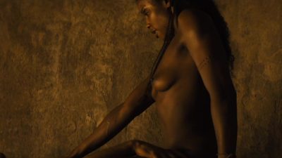 Arianna di Claudio in L’Invisibile s01e02 (2026). The actress flashes her breasts in a topless bed scene.